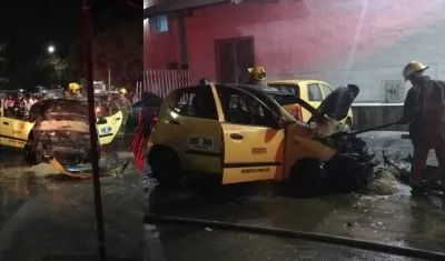 Taxi se incendió, al parecer, tras registrarse un corto circuito en el motor