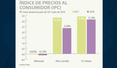 La inflación en Colombia presenta variación negativa del 0,13 % en julio: Dane