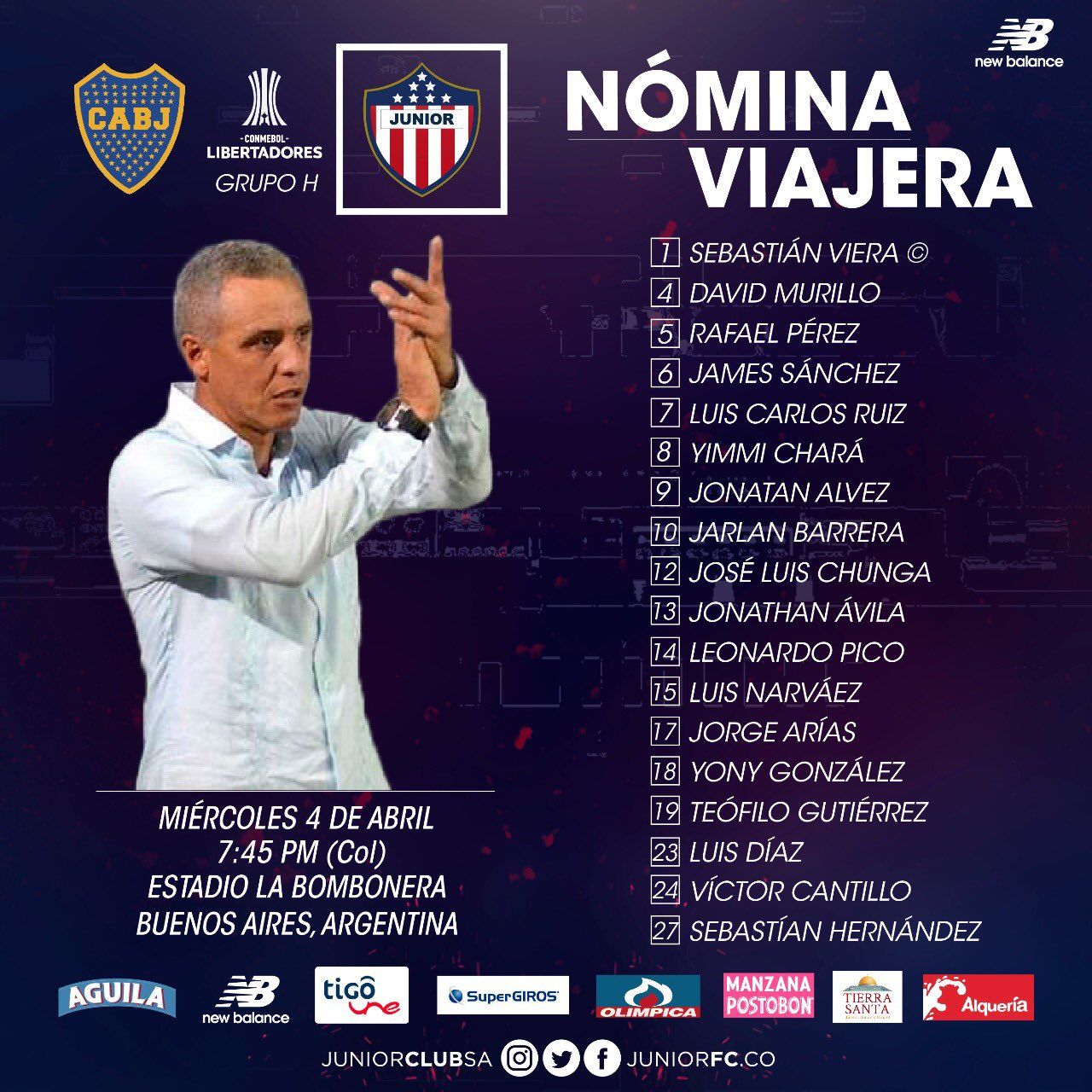 Junior viajará a Bogotá para luego tomar vuelo a Buenos Aires, donde estará arribando en las primeras horas de la mañana de este lunes.