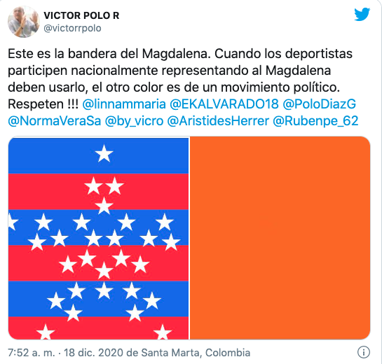 Una de las posturas del funcionario es aclarar que en ningún momento se ha pensado en reemplazar los colores de la bandera del Magdalena. “Decir que se quiere cambiar la bandera es una fakenews. Hay periodistas y directores deportivos que quieren hacer protagonismo con un tema que no tiene ni debate, pues es ilógico pensar en que pretendemos cambiarle los colores a la bandera”.