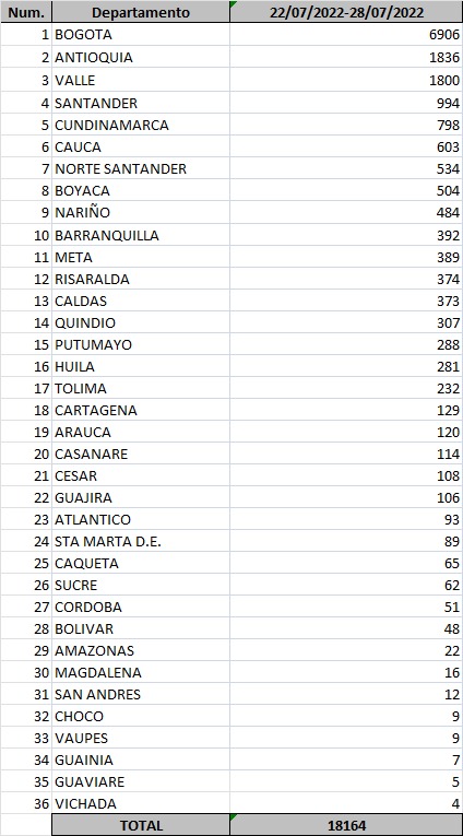 El Ministerio de Salud reportó este jueves 18.164 casos nuevos y 242 muertos por Covid-19 en el país, de la semana del 22 al 28 de julio.