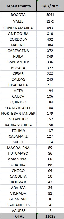 Lista de casos reportados a 3 de febrero -2021