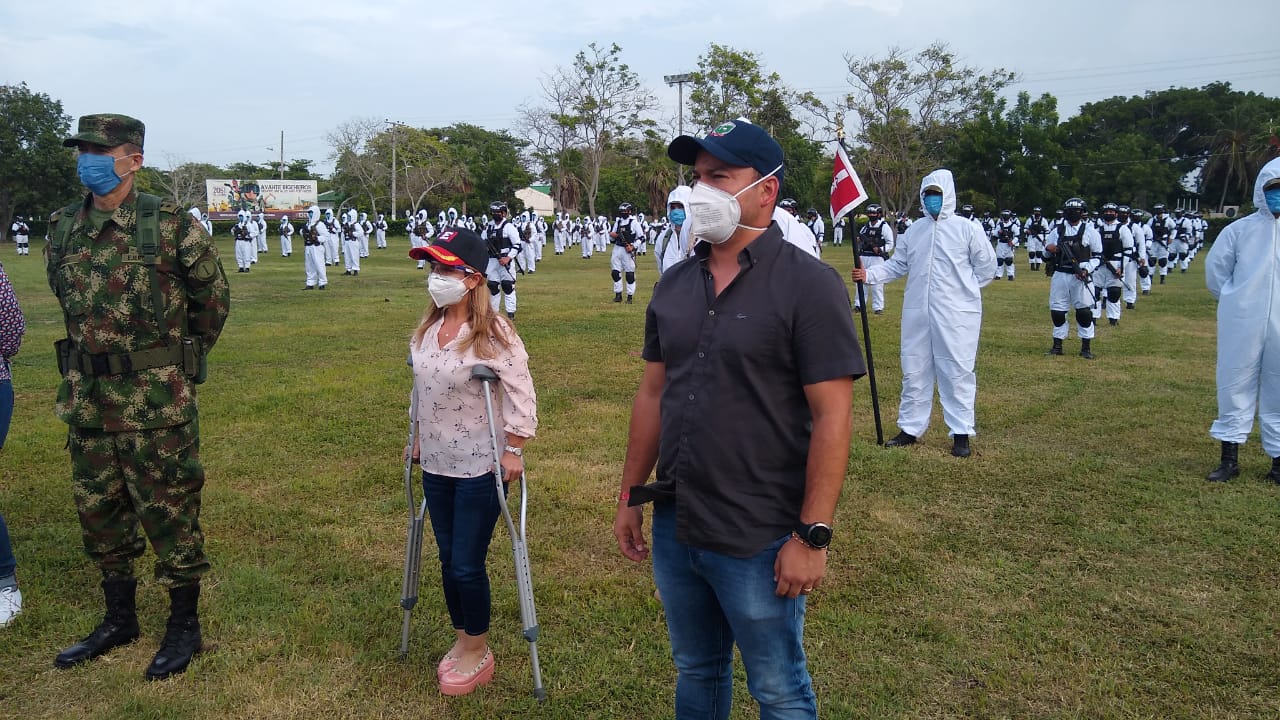 Si en su barrio observa que de un camión del Ejército se baja un personal con vestido de seguridad blanco, tapabocas y arma de largo alcance está usted frente a integrantes del Batallón Anticovid que este viernes se puso en servicio desde el batallón Vergara y Velasco, en el municipio de Malambo, en el área metropolitana de Barranquilla.