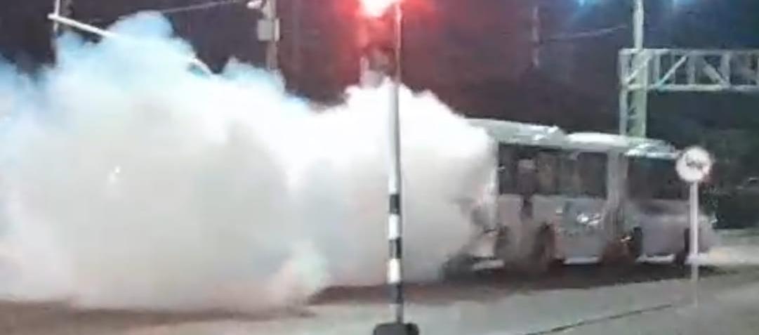 Llegando al Portal de Soledad, sobre la prolongación de Murillo, llegó un articulado de Transmetro que iba echando humo sobre esta importante arteria del municipio, en la noche de este viernes.