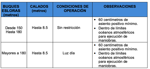 La Dimar agregó que se procederá a realizar análisis en la maniobrabilidad de cada embarcación que se encuentre sobre los límites máximos permitidos y se estará notificando sobre los avances del sector de acuerdo con las intervenciones y afectaciones que se presenten, asimismo, se comunicarán previamente las consideraciones de seguridad que requieran ser adoptadas.