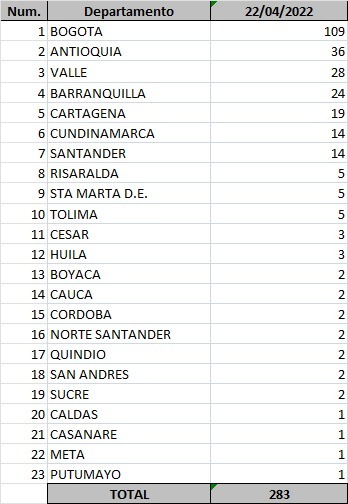 Las muertes ocurrieron en Bogotá, Antioquia, Valle, Arauca, Santander y Vichada.