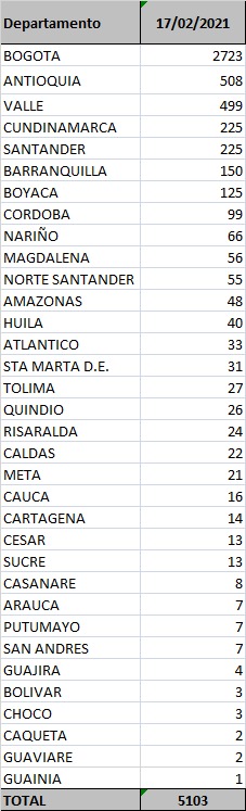 El Ministerio de Salud reportó 5.103 nuevos casos de coronavirus y 185 muertos, el día en que Colombia inició una campaña masiva contra el Covid-19 en Sincelejo y Montería.