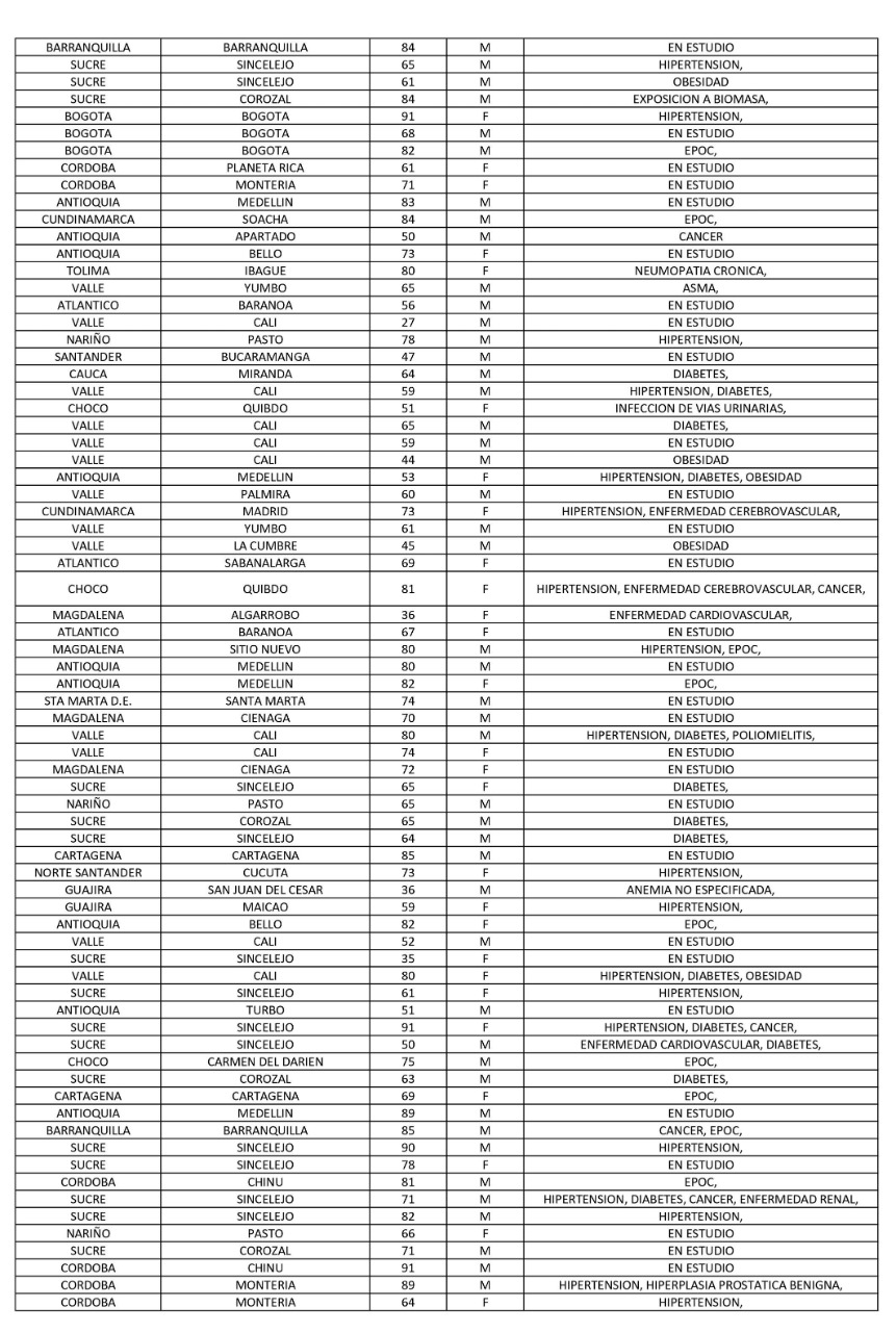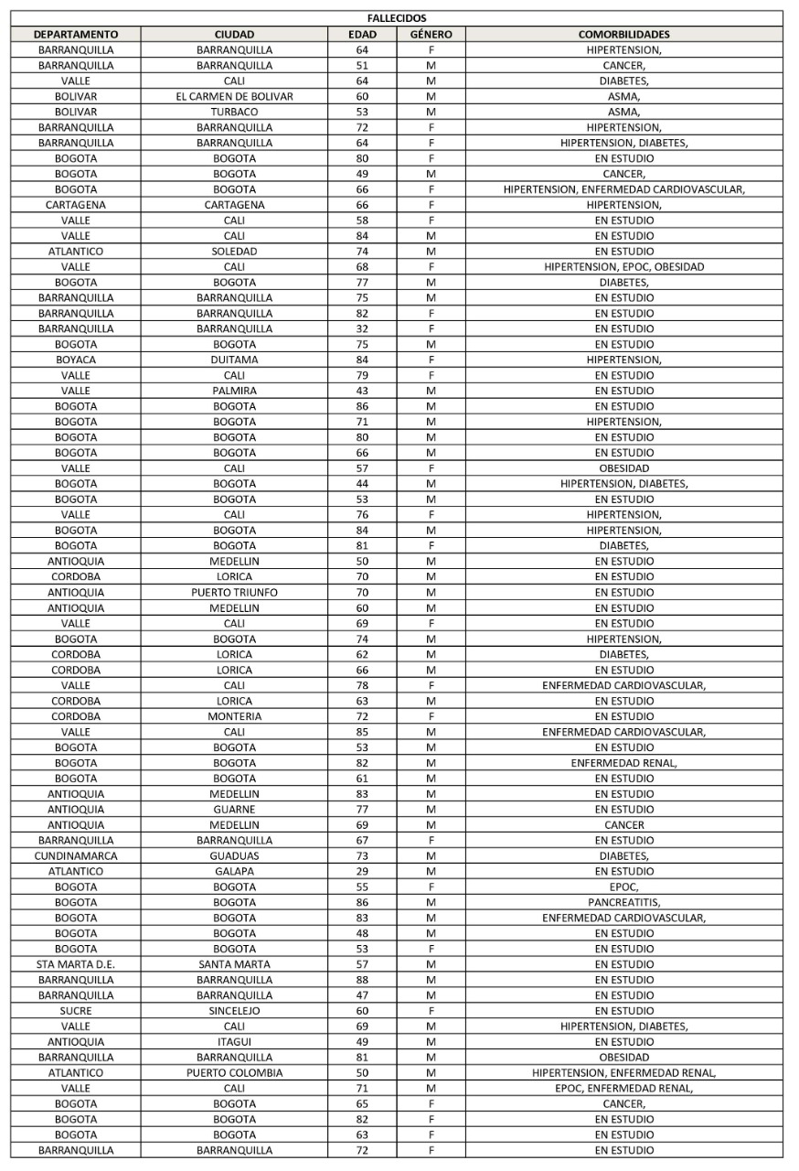 En el reporte de este jueves, al departamento le confirmaron 30 fallecidos: 22 en Barranquilla, 4 en Soledad, 2 en Santo Tomás, 1 en Baranoa y 1 en Puerto Colombia.