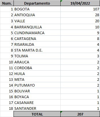 207 casos nuevos en el país.