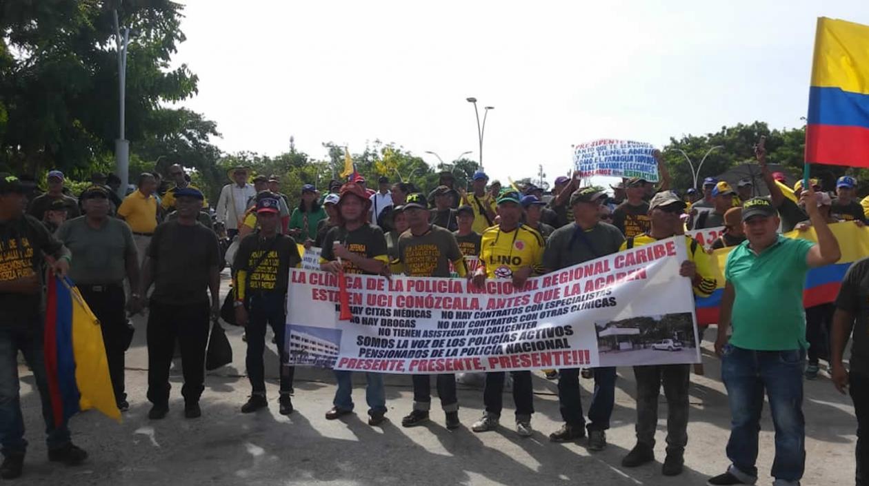 Pensionados de la Policía Nacional y de las Fuerzas Militares, realizaron una marcha en la mañana de este miércoles para exigir nivelación salarial en su pensión y que se mejore los servicios de salud que se encuentran en 'cuidados intensivos'.