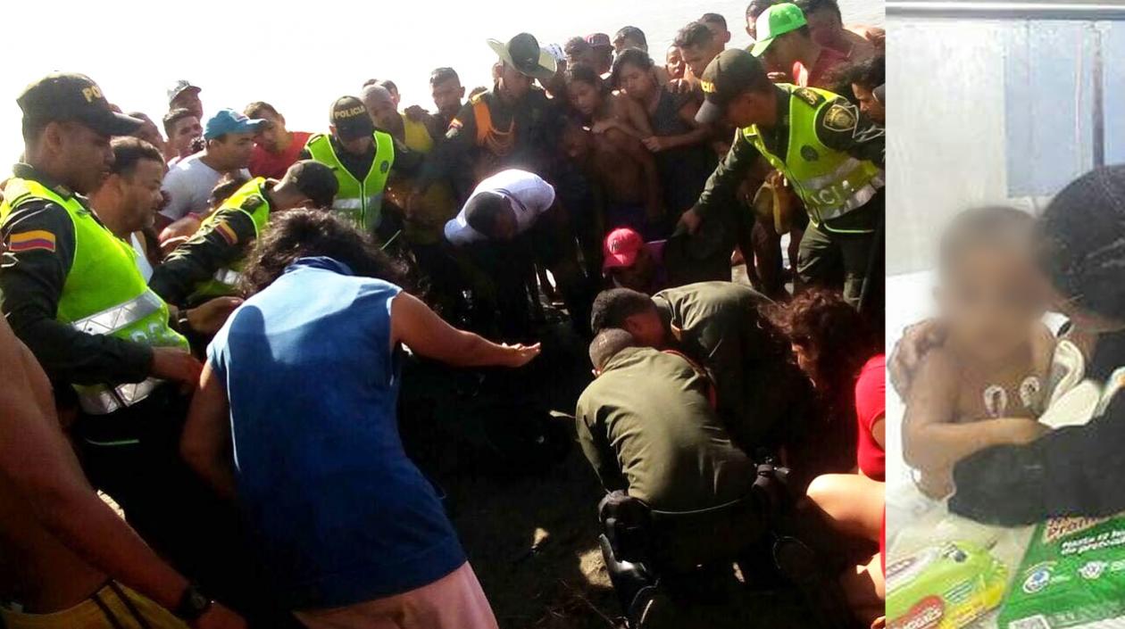 Los patrulleros de la Policía Jonathan González Mejía y Roy Yépez Agámez se convirtieron en los héroes de la jornada tras lograr salvar la vida de un niño de año y medio de nacido que por poco se ahoga en las playas de Puerto Mocho.