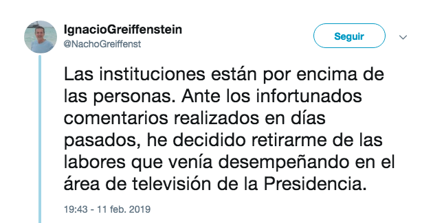 Ese es el caso Ignacio Greiffenstein, director del Servicio de Televisión de la Presidencia de la República, nada más y nada menos.