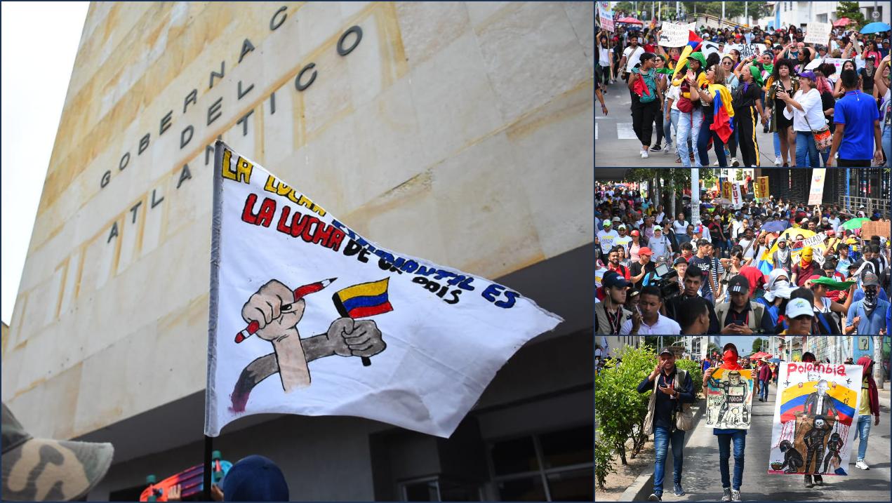 Antes del final de la marcha, los estudiantes se concentraron frente a la Gobernación del Atlántico en donde permanecieron por espacio de varios minutos gritando consignas contra el llamado 'Paquetazo' de Iván Duque.
