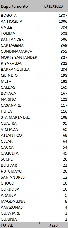 Fallecidos reportados por MinSalud a 9 de diciembre de 2020