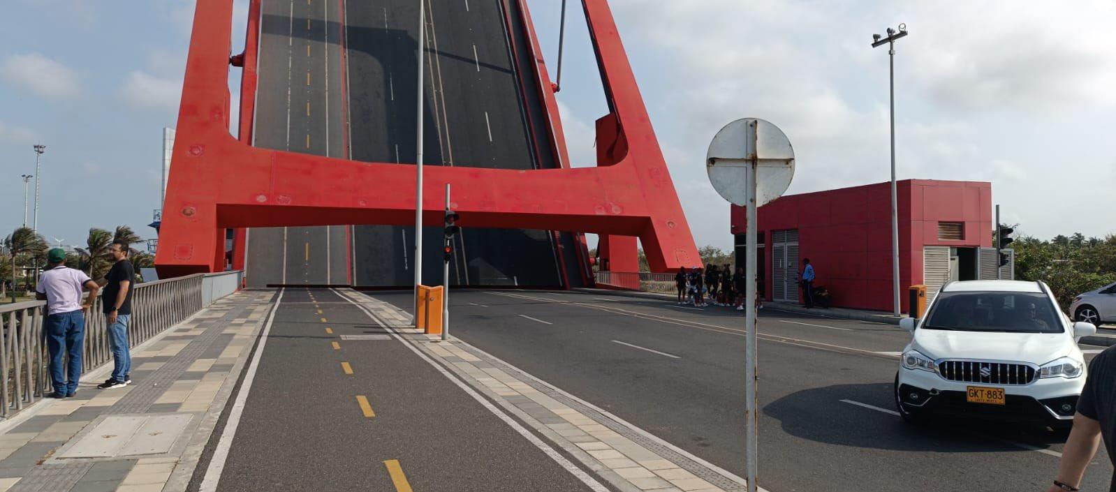 Informó Juan Carlos Rodelo, periodista de Emisora Atlántico, que no hay paso porque "la embarcación está debajo del puente".