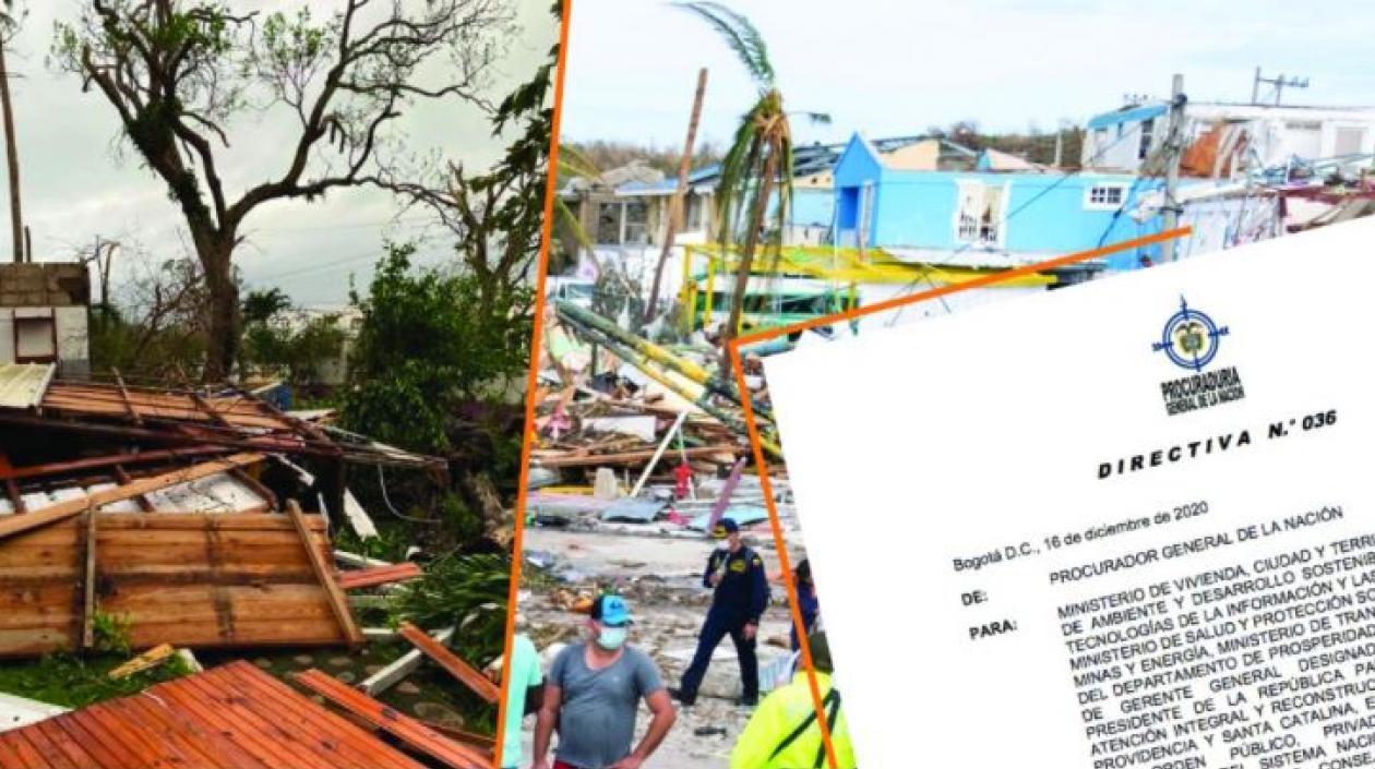 El jefe del Ministerio Público expidió la Directiva No. 036 del 16 de diciembre del 2020, en la que instó a “cumplir con todas las normativas generales, especiales o reglamentarias, expedidas o implementadas con ocasión de la declaratoria de situación de desastre y la ejecución del Plan de Acción Específico elaborado por la Unidad Nacional para la Gestión del Riesgo de Desastres; así como de los principios de la contratación estatal, en todos los procesos y en toda actividad tendiente a las adquisiciones de bienes, obras y servicios requeridos para recuperar y reconstruir el Departamento Archipiélago de San Andrés, Providencia y Santa Catalina”.