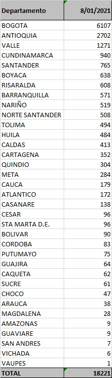 Lista de casos a 8 de enero de 2021