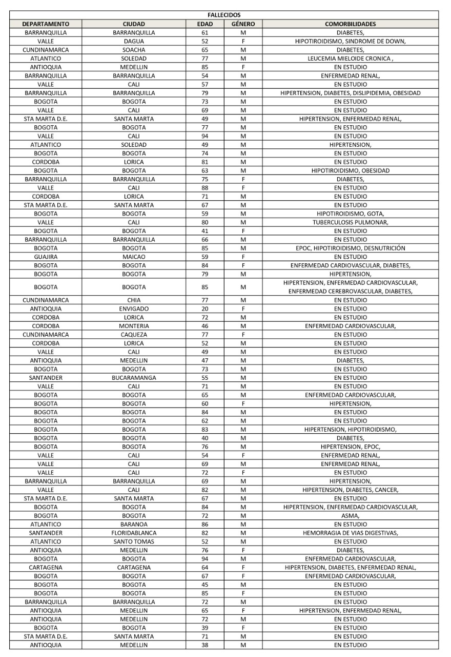 22 decesos en Barranquilla, 4 en Soledad, 2 en Santo Tomás, 1 en Baranoa y 1 en Puerto Colombia.