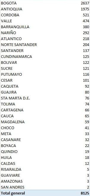 Fallecidos en Colombia - reporte 27 de julio