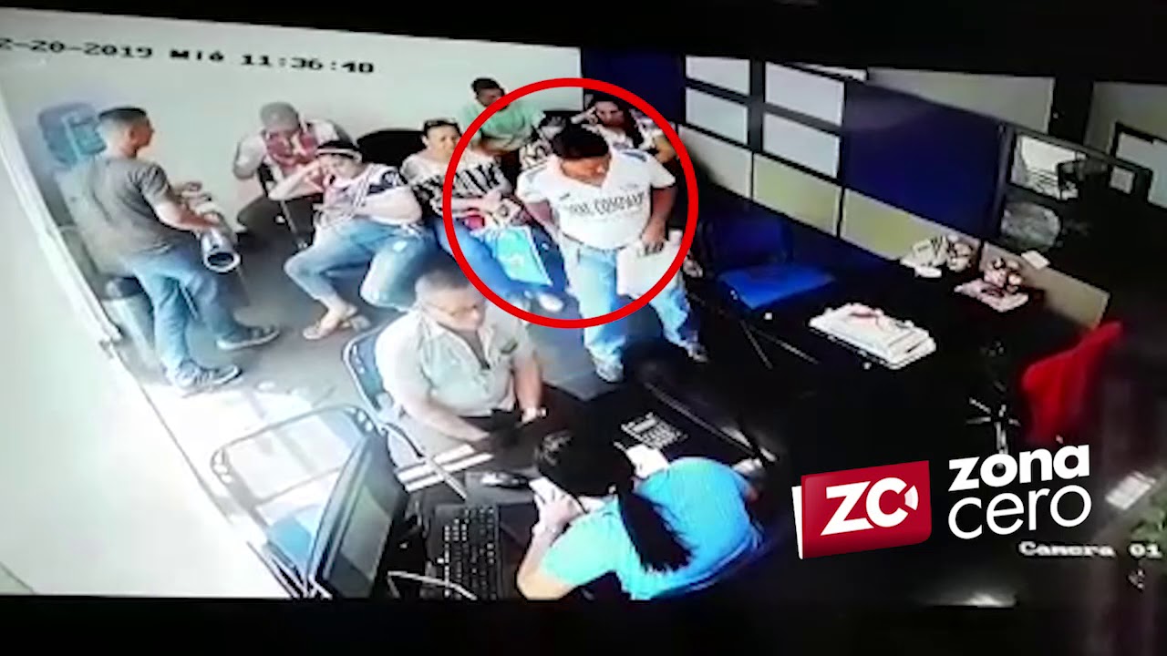 Una funcionaria de la Cooperativa dijo a Zona Cero que ninguno de los tres hombres solicitó ningún servicio en la entidad y que solo se ubicaron estratégicamente para llevarse el portátil.