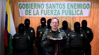 Rubén Darío Rozo, adscrito al departamento de Valle del Cauca (suroeste), aparece en un video rodeado por siete personas vestidas con el uniforme de la Policía Nacional, que cubren sus rostros con pasamontañas y tienen como fondo un cartel en el que se lee la frase "Gobierno Santos enemigo de la fuerza pública".