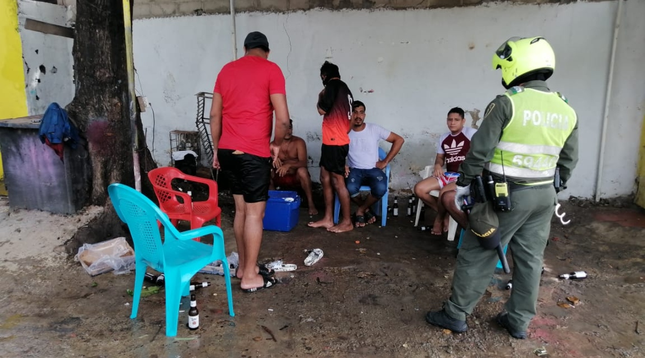 La Policía de Infancia y Adolescencia hizo respetar la cuarentena obligatoria, decretada para evitar el contagio masivo de Covid-19. Los uniformados llegaron este miércoles a la calle 51B con carrera 1 sur, en el barrio Carrizal de Barranquilla, y sorprendieron a cinco hombres que estaban tomando cervezas en plena vía pública sin tener en cuenta el riesgo al que se exponen ante la emergencia sanitaria.