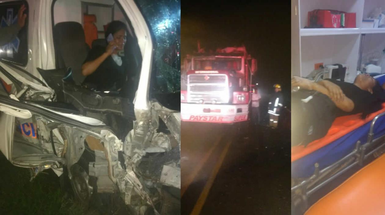 Una ambulancia, de placas KJL 339, colisionó con un tractocamión, de matrícula QAK 335, el cual se encontraba varado en la vía.