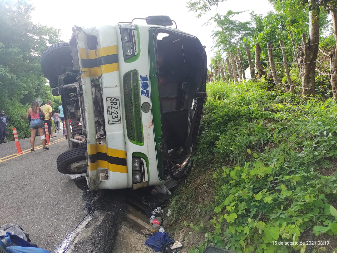 El accidente ocurrió cuando el bus realizaba una curva en bajada por la mencionada vía.