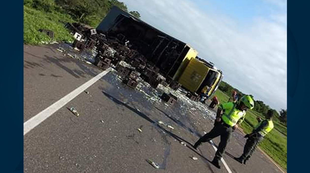 Camión que transportaba cerveza se volcó en la vía Sabanalarga - Sabanagrande