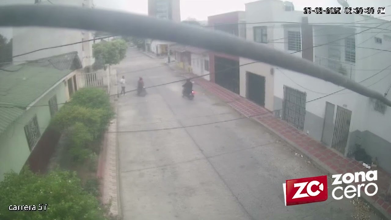 Una cámara de seguridad ubicada en la calle 50 con carrera 57, captó el pasado jueves 27 de marzo el asalto del que fue víctima un joven que caminaba por la zona a las 6:20 de la mañana.