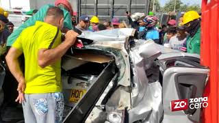 Dos personas quedaron atrapadas en su vehículo tras ser impactados por una tractomula