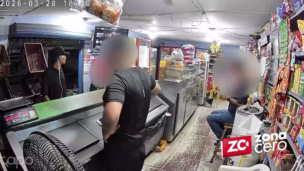 12 minutos después, exactamente a las 6:30 de la tarde, el mismo delincuente llegó a otra tienda del barrio.