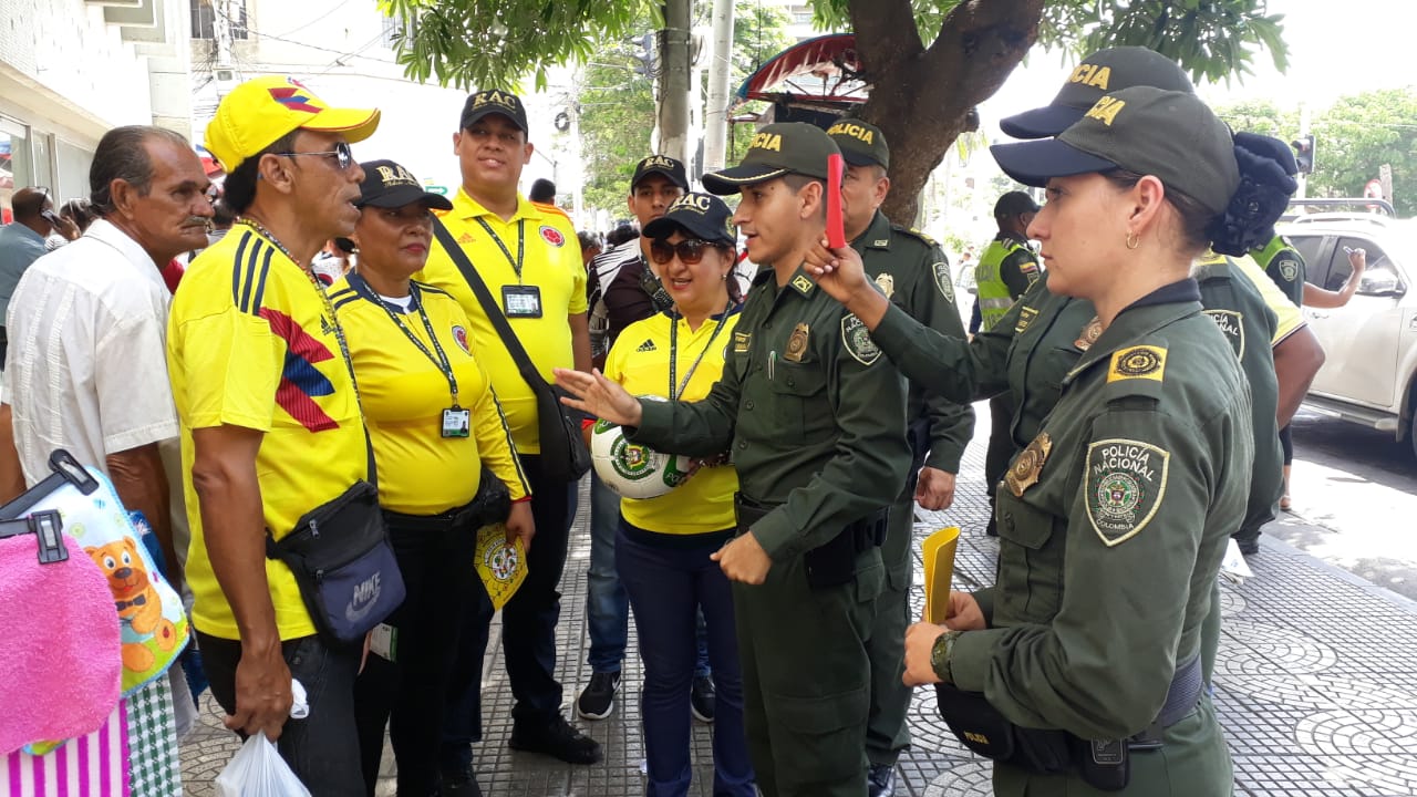 La Policía Metropolitana viene realizando una campaña contra el fleteo. Es así como en marco de la Copa América le sacan 'tarjeta amarilla' o 'tarjeta roja' a los ciudadanos para que tomen consciencia de la prevención que deben tener para no ser víctima del fleteo.