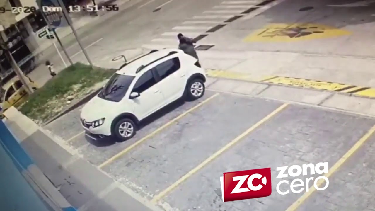 Justo en el mismo lugar en donde registró Zona Cero “un atraco bajo la lluvia” el jueves en la tarde, fue saqueada días antes una camioneta por un delincuente que llega en un taxi.