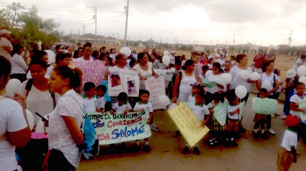 El crimen de la niña Salomé Sofía Jiménez Mendoza ha despertado la solidaridad de los padres de familia y residentes de la Urbanización Villa Olímpica, donde residía la pequeña de 3 años con sus padres.