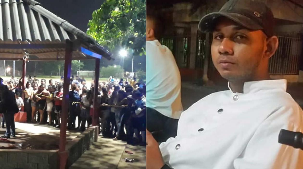 La víctima mortal fue identificada de forma preliminar por la Policía como Erick Nicolás Pérez Posada, de 26 años de edad, quien recibió varios impactos de bala en su cuerpo y murió debajo de un kiosco cercano a la cancha.
