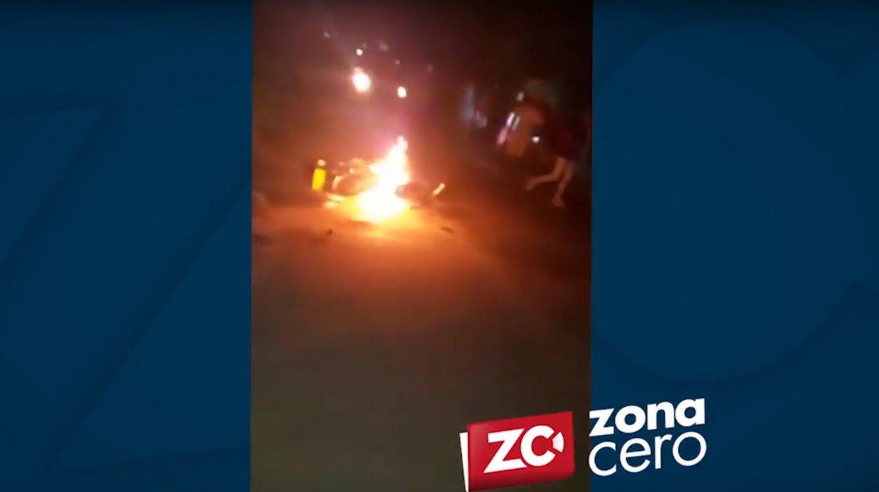 La comunidad en venganza procedió a incendiarles la moto y una patrulla de la policía llegó 20 minutos después y se llevó los restos de la motocicleta.