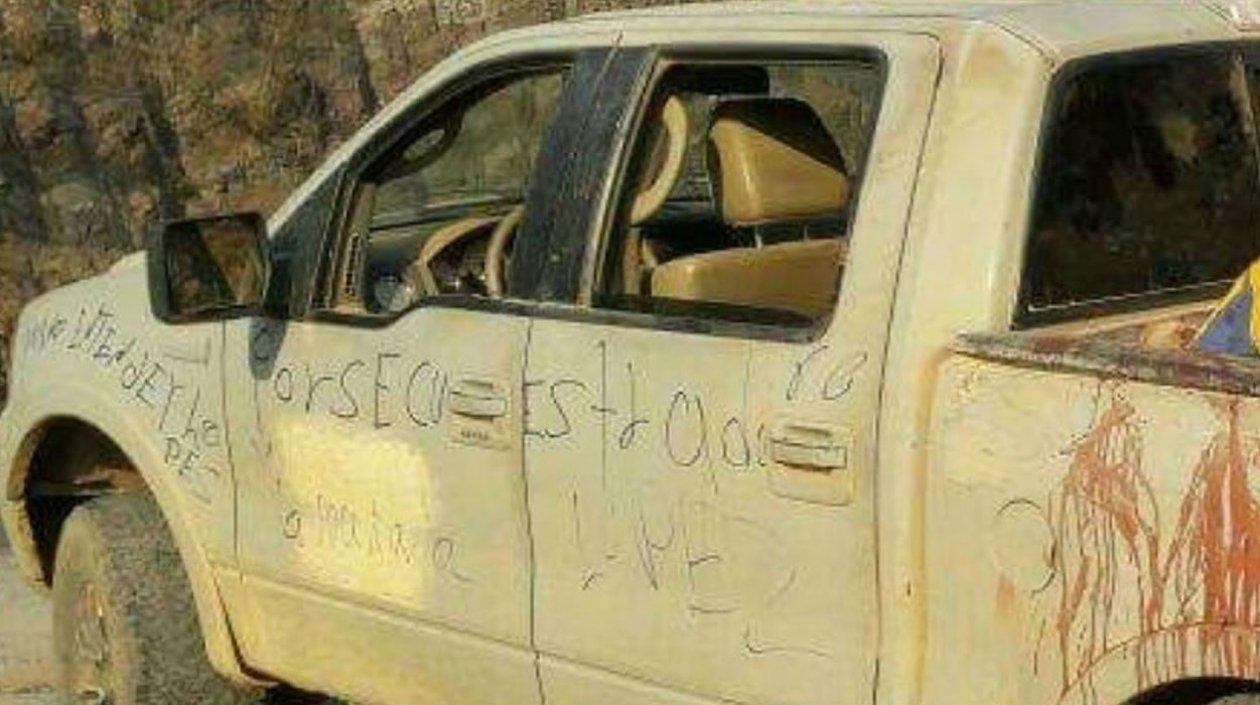 La camioneta estaba en una zona agreste del poblado de El Manzanillal, en el municipio indígena de Aquila, y en ella había presuntos mensajes del narcotráfico.