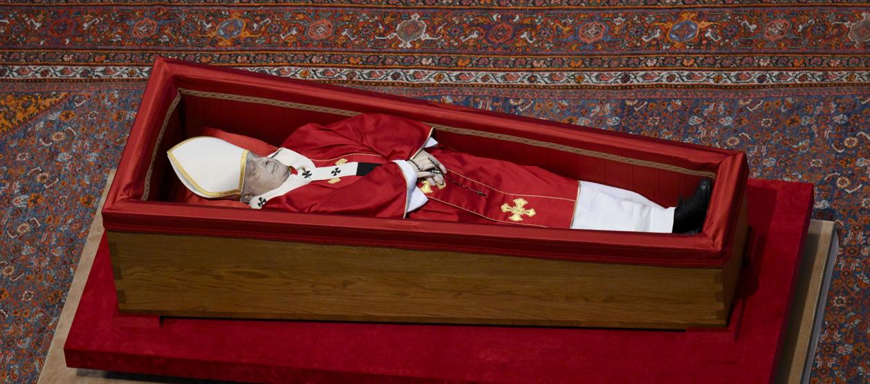 El féretro fue colocado frente a la tumba de San Pedro, enfrente del imponente baldaquino de Bernini, y se ha acordonado la zona para que las personas se sitúen a una determinada distancia.