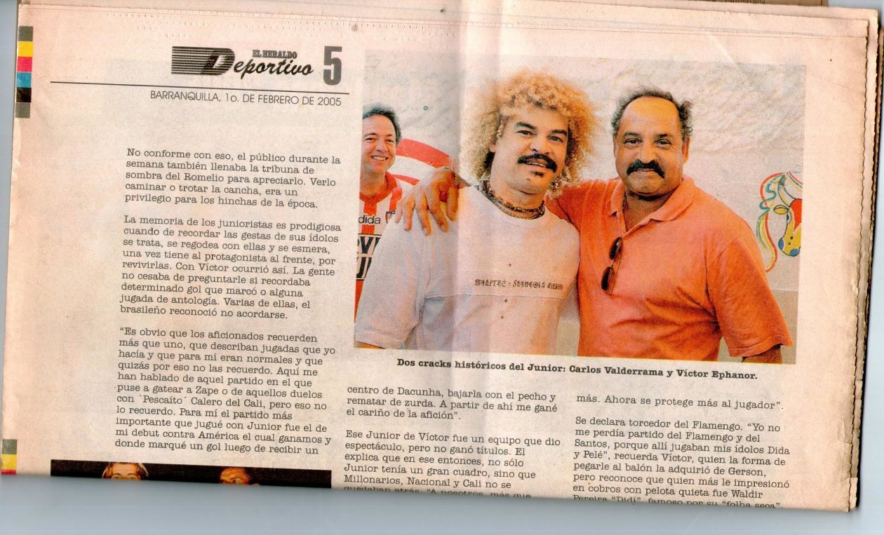 Ambos, el brasilero como el criollo, marcaron sin duda especiales páginas de fútbol vistiendo los colores rojiblanco del Junior. En ellos se recrea-para quienes tuvimos la grata ocasión de verlos jugar, un juego pletórico de espectacularidad, de romanticismo y alegría para la tribuna. La diferencia estriba exclusivamente en que Víctor Ephanor no pudo saborear las mieles de un título; en cambio Valderrama lo consiguió en dos ocasiones con Junior 1993 y 1995, siendo éste el único equipo colombiano que lo encumbró a la máxima expresión de campeón.