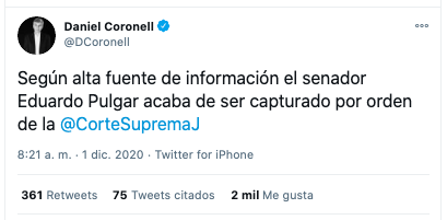 Capturan al senador Eduardo Pulgar por presunto soborno de las '200 barras'