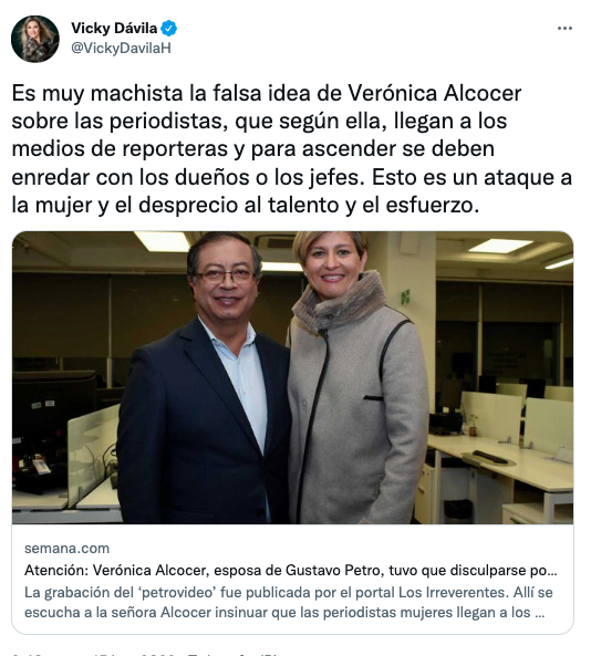 Comunicadoras como Vicky Dávila y Jessica De La Peña le dedicaron unos trinos a la esposa del candidato.