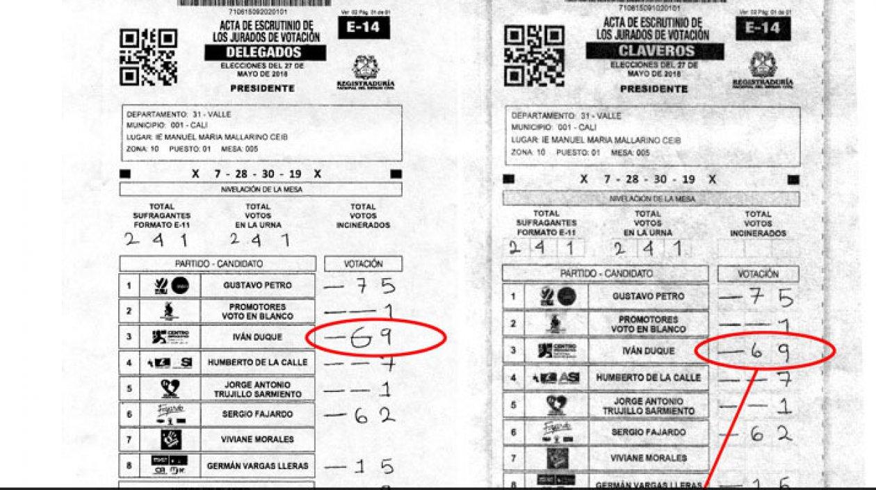 La Registraduría Nacional del Estado Civil emitió un comunicado en el que precisa la función del formulario E-14, en respuesta a una imagen que circuló en redes sociales que supuestamente era una irregularida, según quienes publicaban. "Consultados los correspondientes formularios E-14 de Claveros y el formulario E-24 de la comisión de escrutinio, se observa la coincidencia de los resultados. No hay ninguna irregularidad", dice la comunicación..