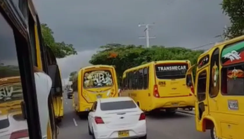 En caravana, conductores de Transmecar salieron a protestar por la calle 30