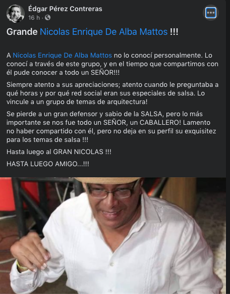 Falleció el reconocido coleccionista de salsa Nicolás De Alba Mattos