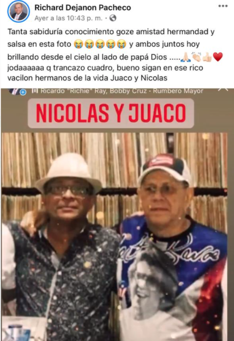 También recibió mensajes de movimientos salseros y amigos que lo acompañaron a diario.