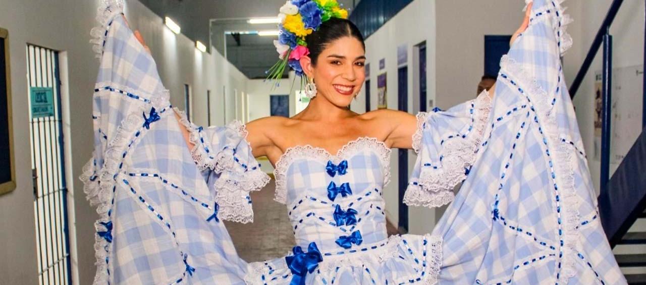 ¡Segundas oportunidades llenas de esperanza! La Reina del Carnaval de la 44, Alexsandra Estarita Villa, recibió un vestido de Cumbia azul con blanco confeccionado en la cárcel La Modelo, de Bogotá.